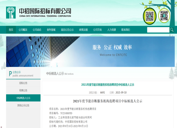 9月10日,公司通過工業和信息化部節能與綜合利用司的采購招標程序,順利中標“2021年度節能診斷服務機構選聘項目”。這是繼2019、2020年之后,第三次中標年度節能診斷服務機構選聘項目,我公司已累計為21家工業企業提供公益性節能診斷服務。