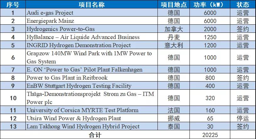 根據美國能源部統計數據顯示目前,全球共有13個氫儲能項目,其中9個處于運營狀態,這13個項目的額定功率共計20.23MW;另外值得注意的是,這13個項目中,有7個位于德國。