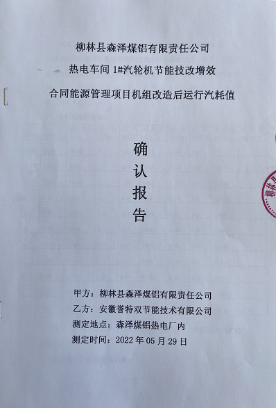 我公司以合同能源管理模式,全額投資實施的山西森澤煤鋁集團12MW背壓1#機組節能技改提效合同能源管理項目,自2022年5月19日開機沖轉成功并網以來,機組各項參數指標均正常、穩定。項目于5月29日順利通過工程驗收,實測同等工況條件下,節能提效比例達34.1%,遠超合同約定的30.7%考核指標。