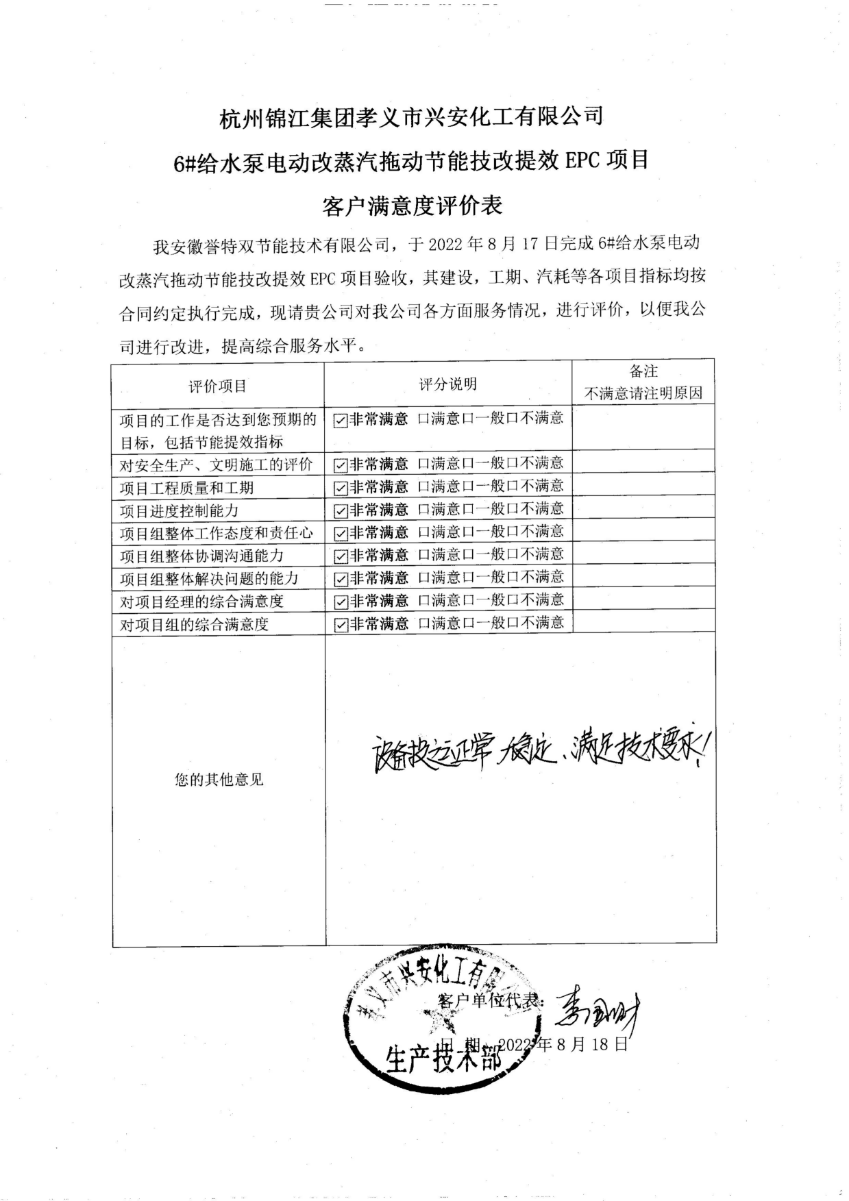 近期,我公司以EPC施工總包方式建設的中國五百強企業——孝義市興安化工有限公司、開曼(陜縣)能源綜合利用有限公司,兩臺2.1MW蒸汽拖動給水泵電改汽節能技改項目正式通過工程驗收。